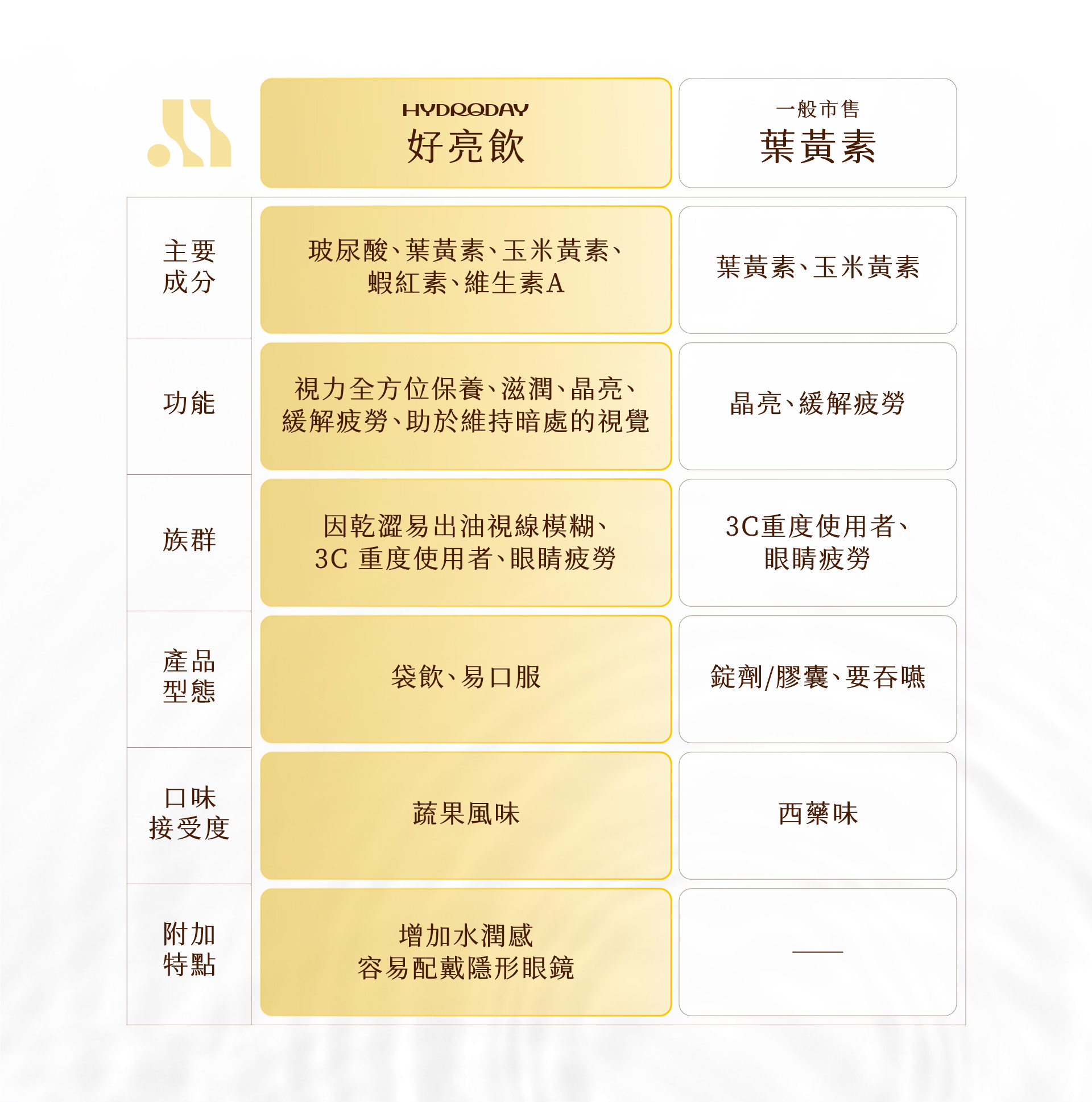渼汩好亮飲搭載金盞花葉黃素+蝦紅素,守護雙眼清晰;