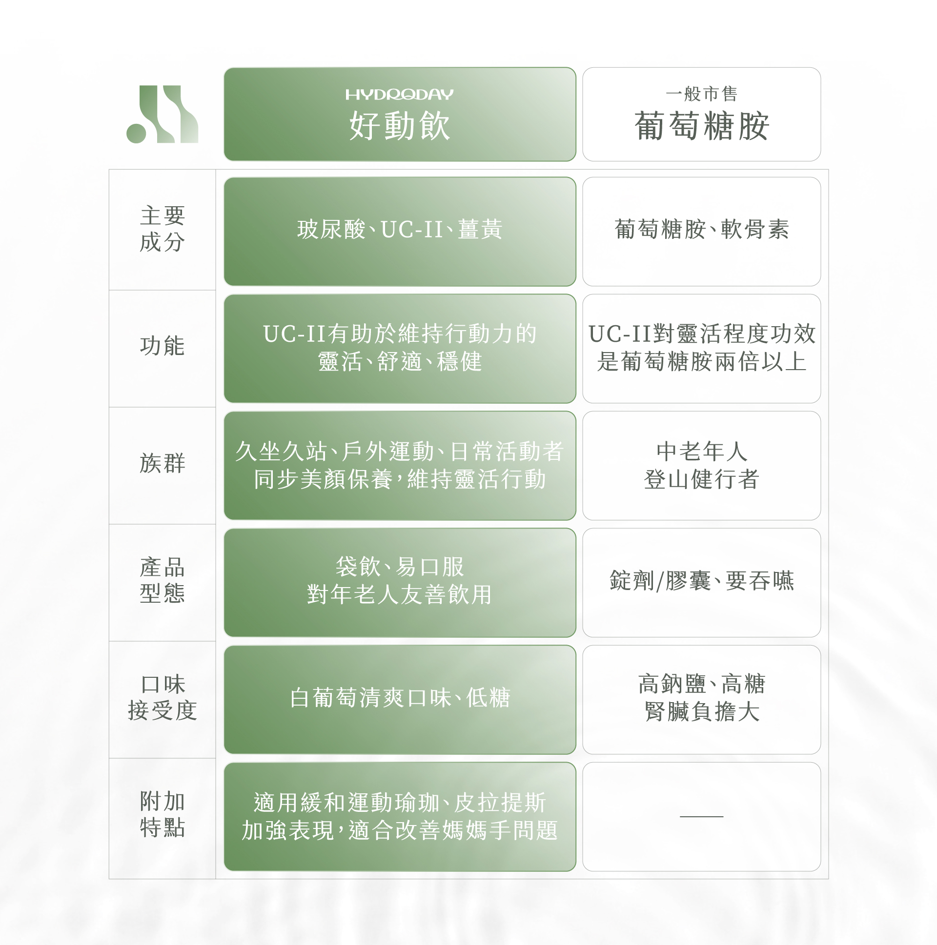 🔹玻尿酸:維持關節潤滑,支持靈活行動。
