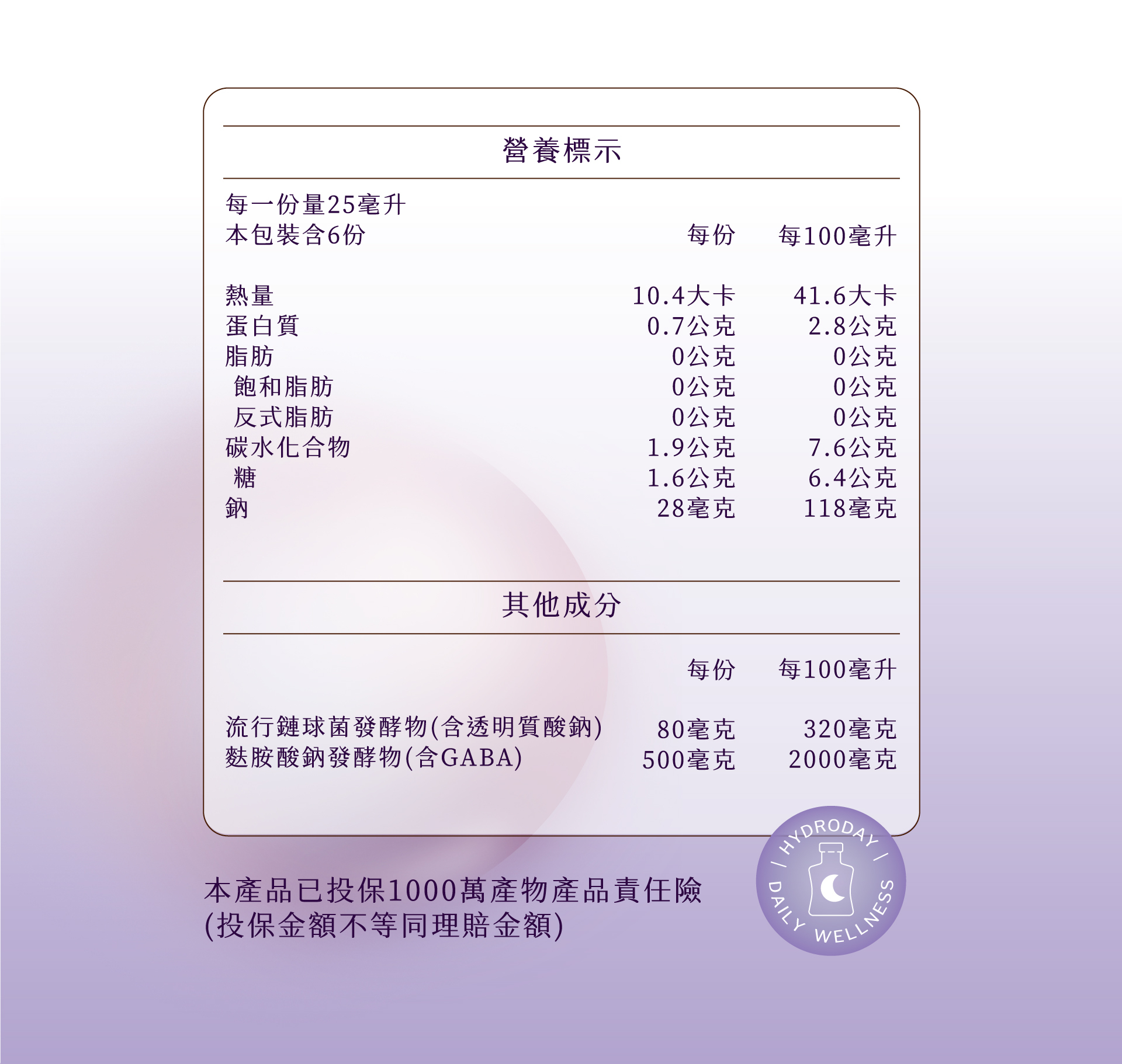 🔹玻尿酸:補水修復,醒來水潤有精神。